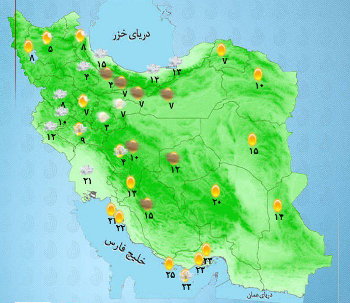 فردا نیز پیشبینی میشود بارشها در بخشهایی از شمال غرب کشور ادامه یابد، استانهای آذربایجان غربی، آذربایجان شرقی،