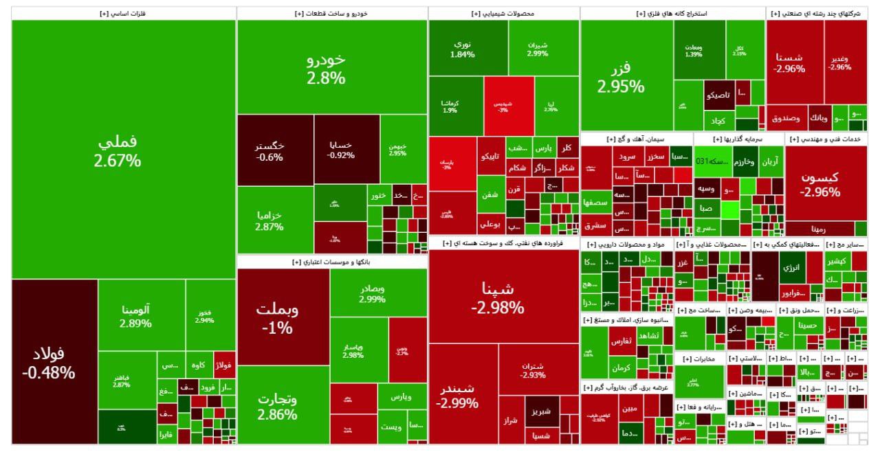 در پایان دادوستدهای روزانه ۴۸ درصد از نمادهای بازار سهام منفی شدند و ارزش صفوف خرید و فروش پنج خط اول سهام روی رقم ۱۲۰۰ میلیارد تومان برابر شدند.