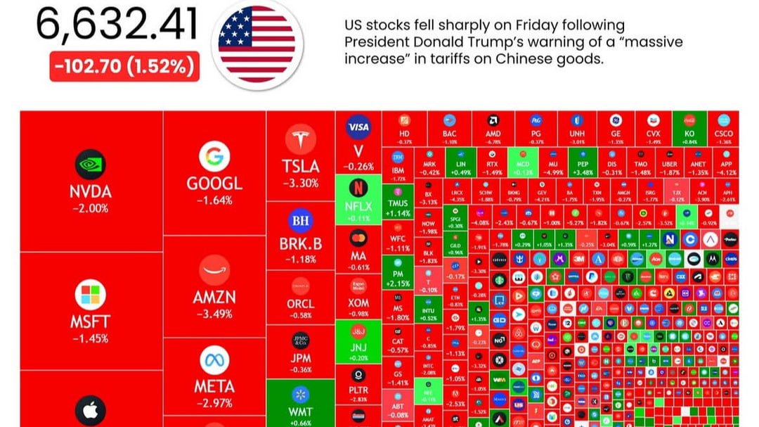 بازارهای آمریکا در یک ریزش سنگین، تمام سودهای هفته را از دست دادند. این سقوط تاریخی که بزرگترین افت از زمان ترامپ بوده، در پی اعلام لغو دیدار با رئیسجمهور چین و تهدید به افزایش «عظیم» تعرفهها رخ داد.