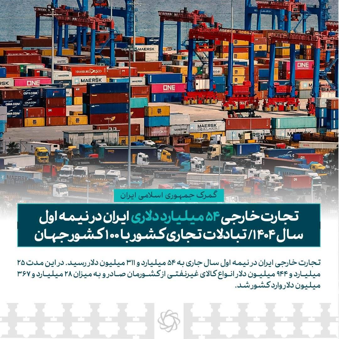 تجارت خارجی ۵۴ میلیارد دلاری ایران در نیمه اول سال ۱۴۰۴