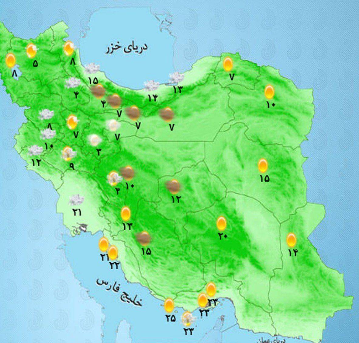 به گزارش پایگاه خبری خبربین آنلاین بر اساس اعلام سازمان هواشناسی کشور،همچنین امروز برای استانهای آذربایجان شرقی، آذربایجان غربی، اردبیل، همدان، لرستان، چهارمحال بختیاری، کرمانشاه و اصفهان هشدار کاهش محسوس و شدید دمای هوا، یخبندان و یخزدگی گسترده، سرمای غیرمتعارف صادر شده است.