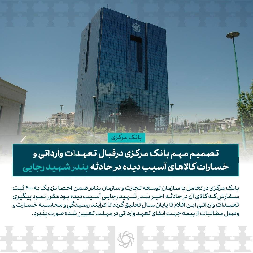 تصمیم مهم بانک مرکزی درقبال تعهدات وارداتی و خسارات کالاهای آسیب دیده در حادثه بندر شهید رجایی