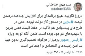 تکذیب افزایش قیمت بنزین از سوی معاون دفتر رئیسجمهور