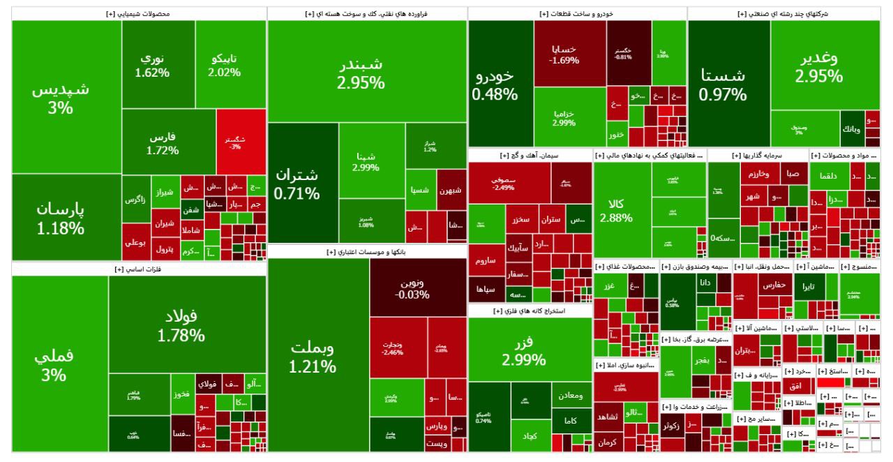 شاخص کل بورس امروز ۳۴ هزار و ۶۳۹ واحد بالا رفت و با رشد ۱.۲۸ درصدی در ارتفاع دو میلیون و ۷۳۵ هزار و ۱۷۴ واحد قرار گرفت.