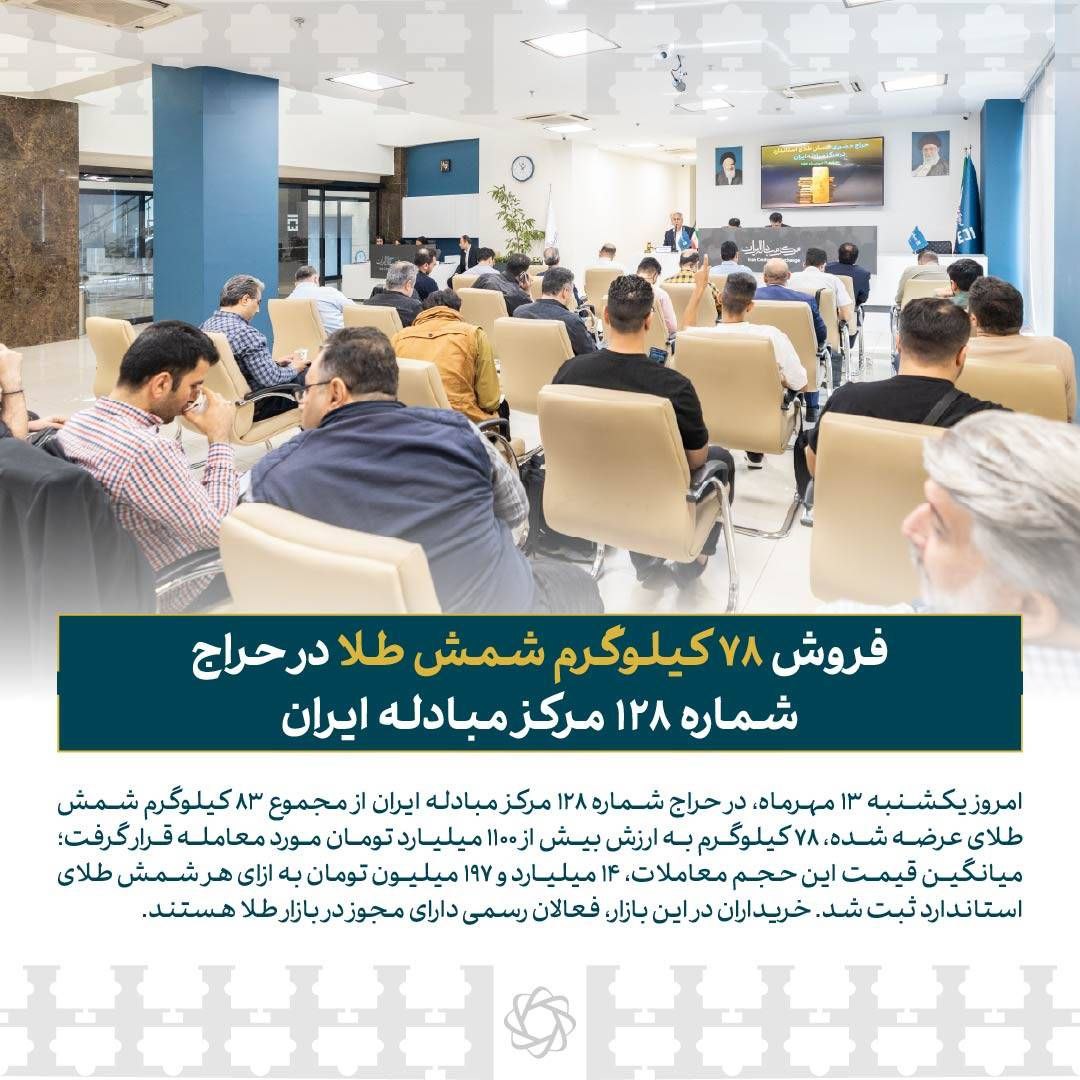 گفتنی است، از ابتدای سال جاری تا کنون، ۳۱ جلسه حراج شمش طلا در مرکز مبادله ایران برگزار شده است که در نتیجه آن، ۲۳۴۹ کیلوگرم شمش به ارزش حدود ۲۳.۴ هزار میلیارد تومان به فروش رسید.