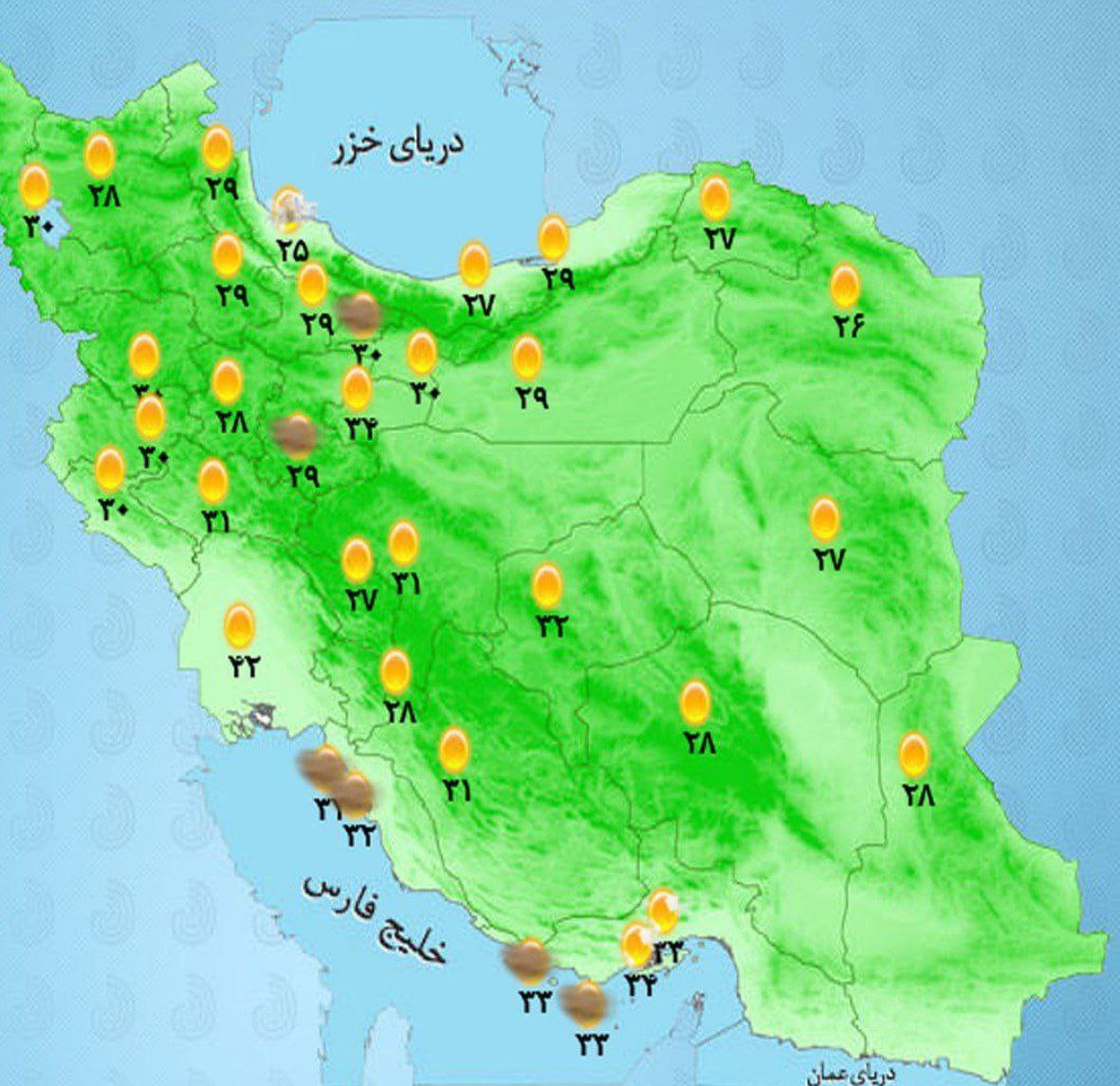 همچنین فردا در آذربایجان غربی، آذربایجان شرقی، اردبیل، گیلان، مازندران و شمال کردستان رگبار و رعدوبرق پیشبینی شده است.