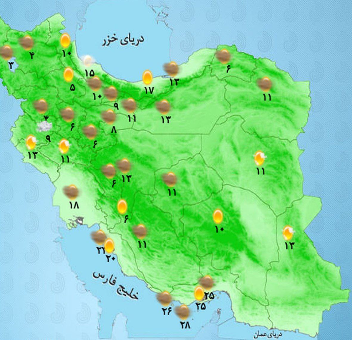 امروز با ورود سامانه بارشی به شمالغرب کشور در مناطقی از آذربایجان غربی، آذربایجان شرقی، اردبیل، برخی نقاط استانهای کردستان، کرمانشاه، همدان، مرکزی و دامنههای جنوبی البرز واقع در زنجان، قزوین، البرز و تهران ابرناکی، رگبار پراکنده و وزش باد شدید موقتی پیشبینی میشود.