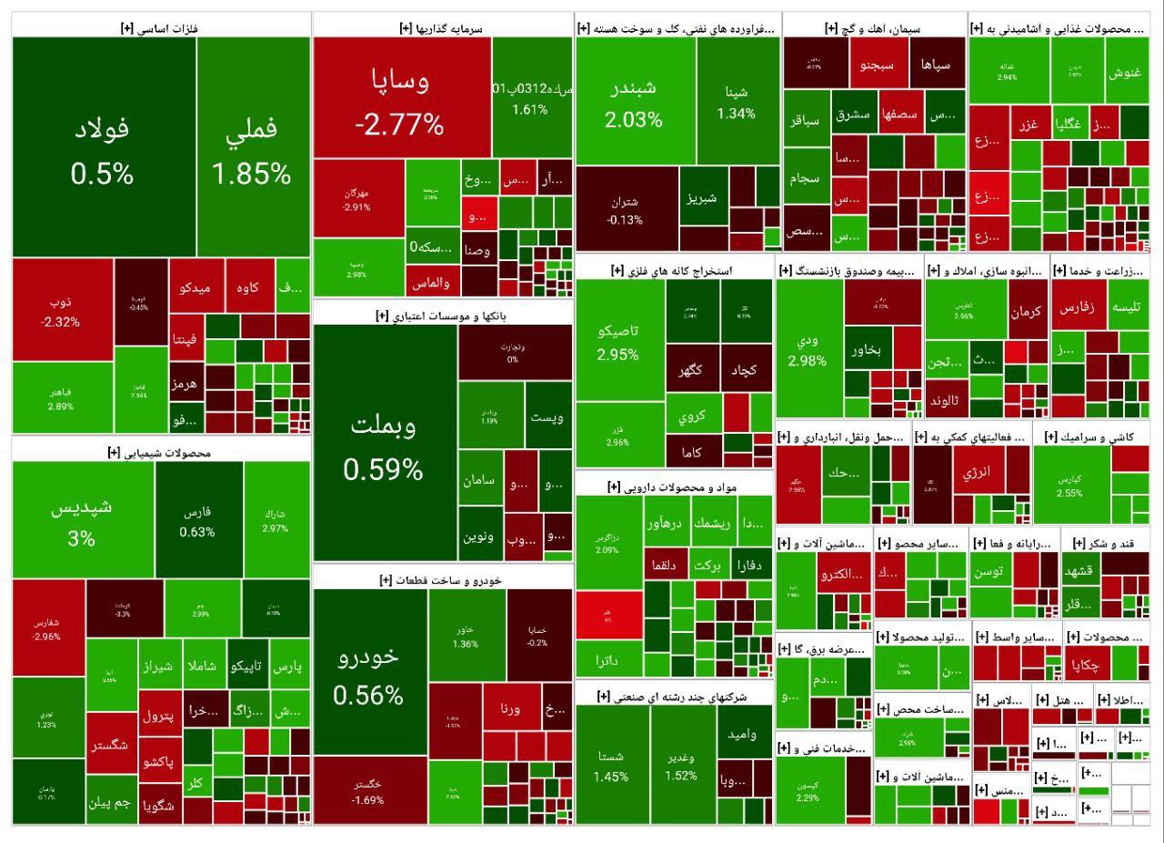 شاخص کل بورس هزار و ۴۳۰ واحد رشد کرد و با افزایش ۰.۰۴ درصدی در ارتفاع سه میلیون و ۲۷۴ هزار و ۴۷۳ واحد متوقف شد. شاخص هموزن اما امروز کاهش یافت و ۹۱۶ واحد پایین رفت تا با افت ۰.۱ درصدی در سطح ۹۳۷ هزار و ۴۷۰ واحد قرار گرفت.